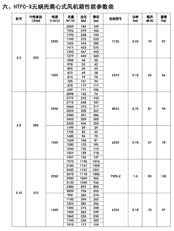 三、SWF-IV(HL3-2A)、HTF-PY(PYHL-14A)系列節(jié)能混流風機