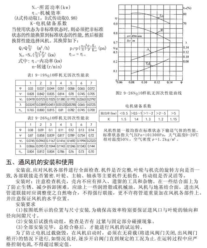 一、風(fēng)機(jī)選用參考、安裝維護(hù)使用說明、常見故障分析、訂貨注意事項(xiàng)