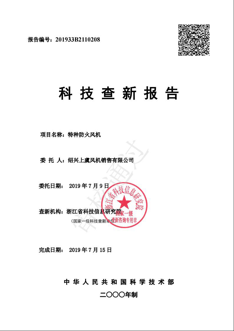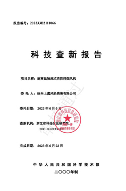 科技查新報告(耐高溫消防排煙風(fēng)機) |
