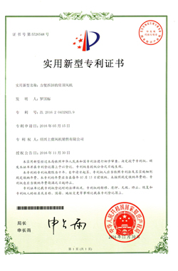 | 防火風(fēng)機專利證書 |